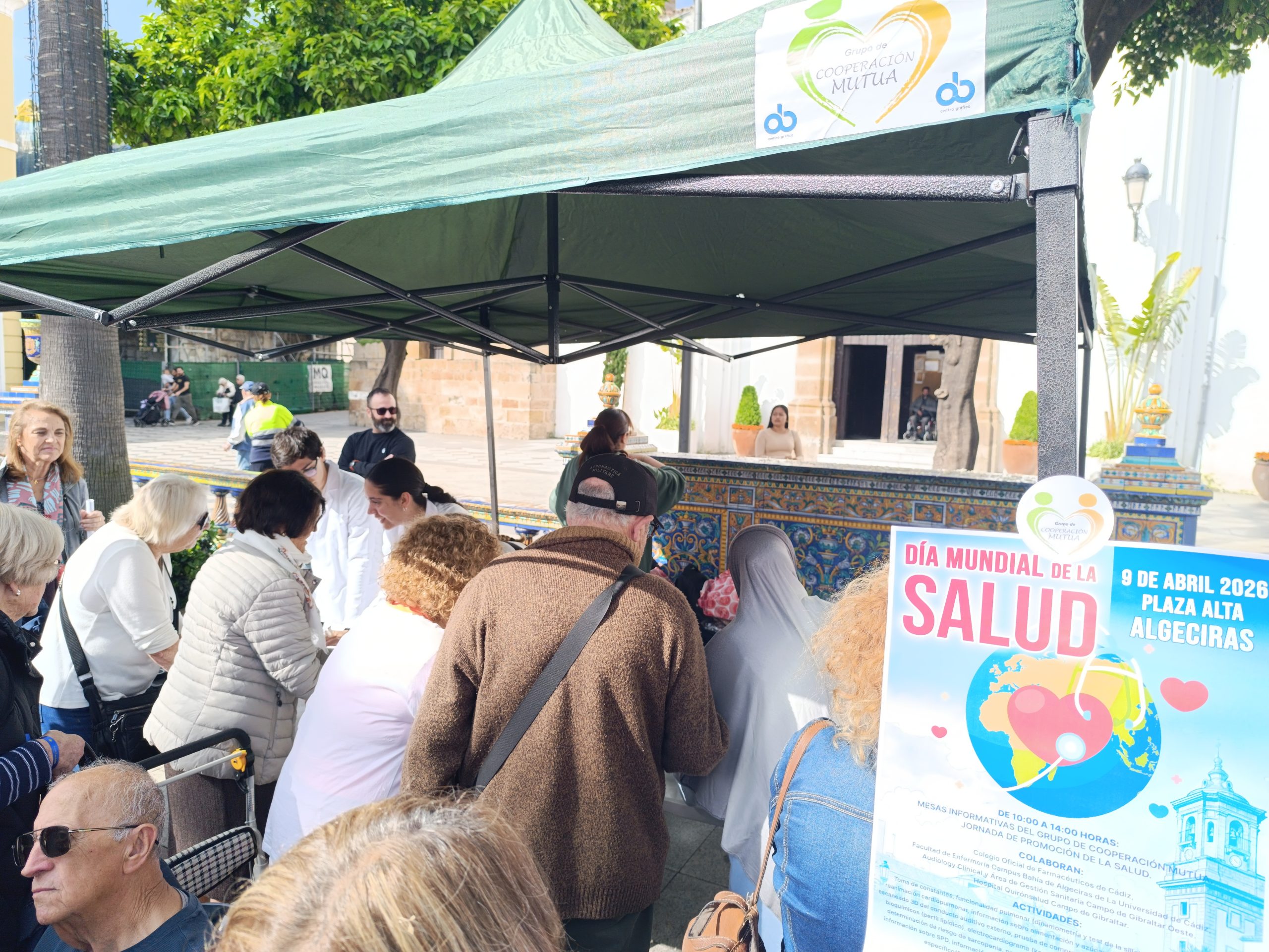 En el marco de la conmemoración del Día Mundial de la Salud, la Facultad de Enfermería ha tenido hoy una presencia destacada en las actividades organizadas en la ciudad de Algeciras. La jornada, que sucede a la presentación oficial del cartel del evento realizada el pasado 7 de abril en el Ayuntamiento, ha contado con la implicación directa del profesorado adscrito al Área de Enfermería y de estudiantes del Grado en Enfermería, consolidando el compromiso de la institución con la salud pública local.