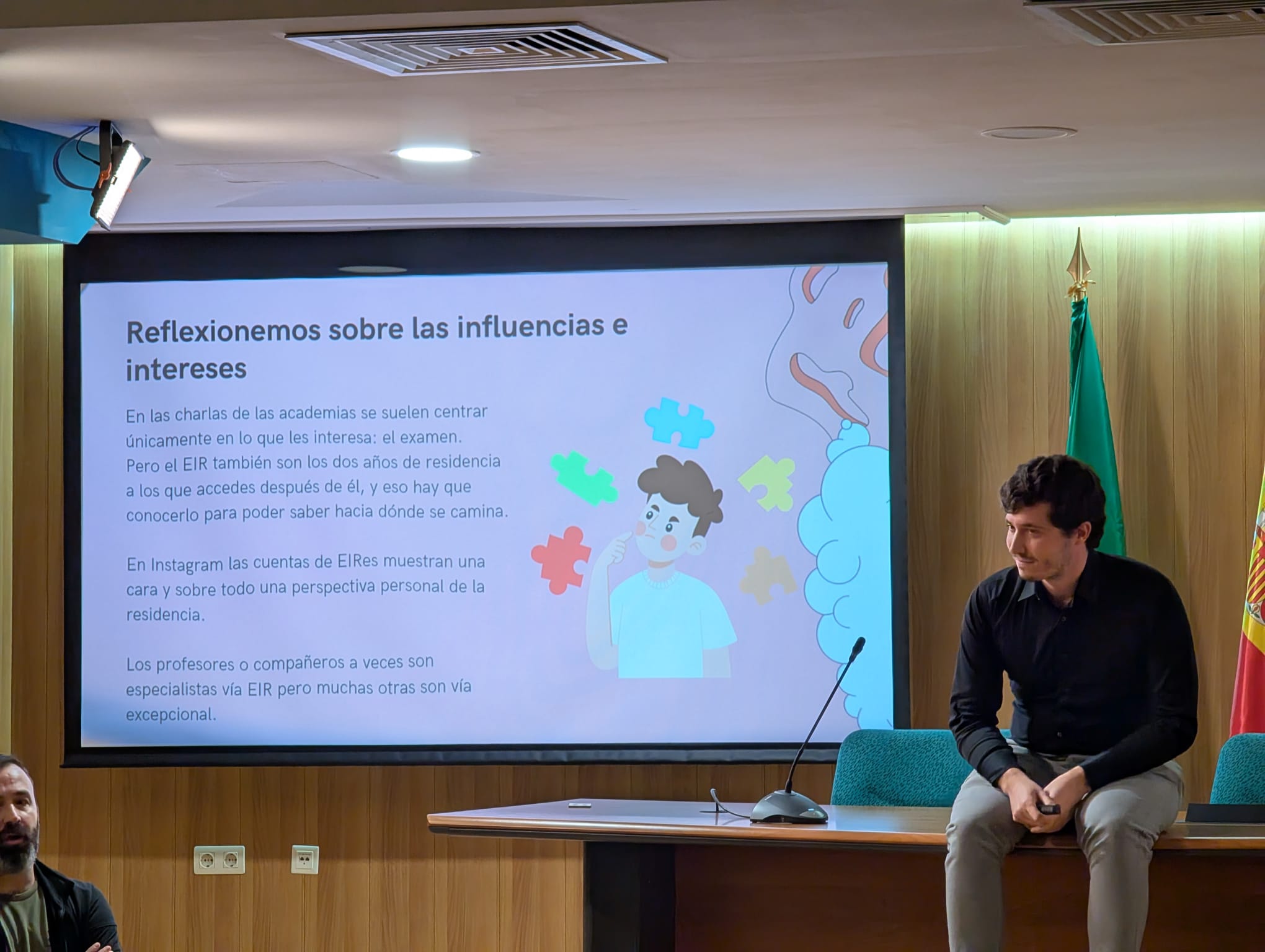 El taller fue impartido por Enrique Cana Benítez, enfermero especialista en Enfermería Familiar y Comunitaria y miembro de la Junta Directiva de la Asociación EIR (AEIR) (@Asociacion_eir). Esta asociación tiene entre sus objetivos dar a conocer el EIR, promover el reconocimiento profesional de las especialistas y reivindicar la mejora de las condiciones laborales de los residentes y especialistas. Esta asociación, compuesta de voluntarias sensibilizadas con la especialidad enfermera, trabaja con multitud de entidades, organismos, sociedades científicas y sindicatos para promover el desarrollo de todas las especialidades enfermeras.